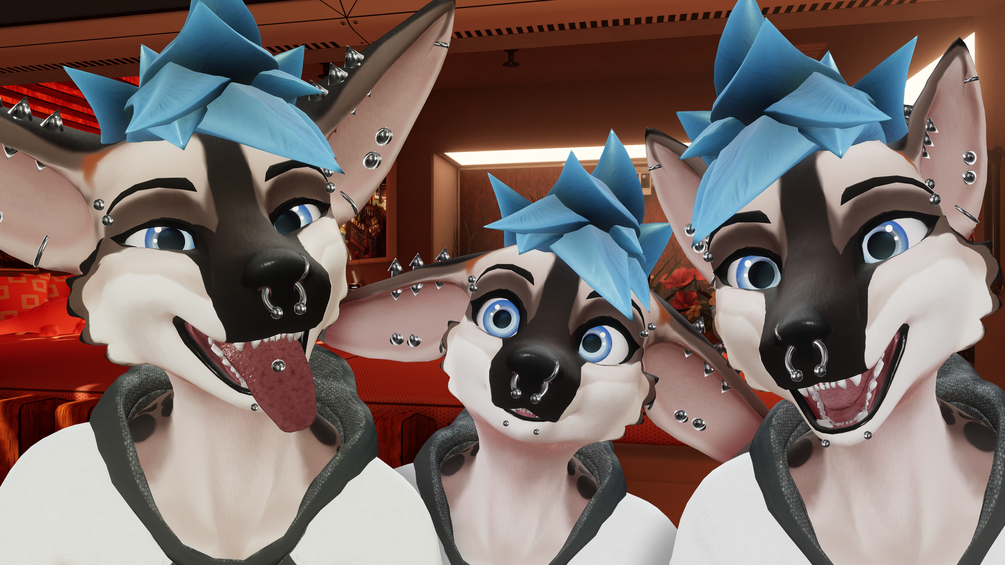 - Piercings not following the visemes using VRCFury Advanced Visemes. Proper fix is to merge the piercing mesh with the Viwi mesh in Blender.